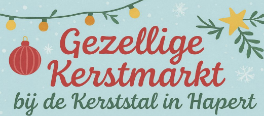 Heb je een (web)winkel of ben je creatief en wil je spullen verkopen? Reserveer dan een kraam voor 25,-. Stuur een mail naar kerststalhapert@gmail.com