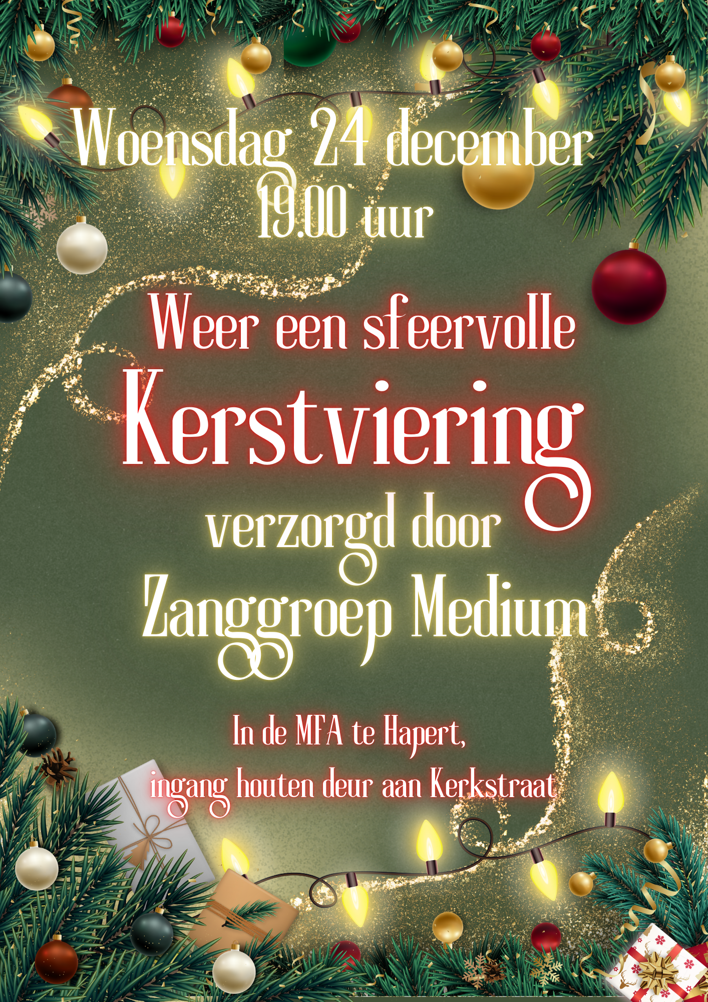 Weer een mooie muzikale Kerstviering op Kerstavond georganiseerd door zanggroep Medium.
